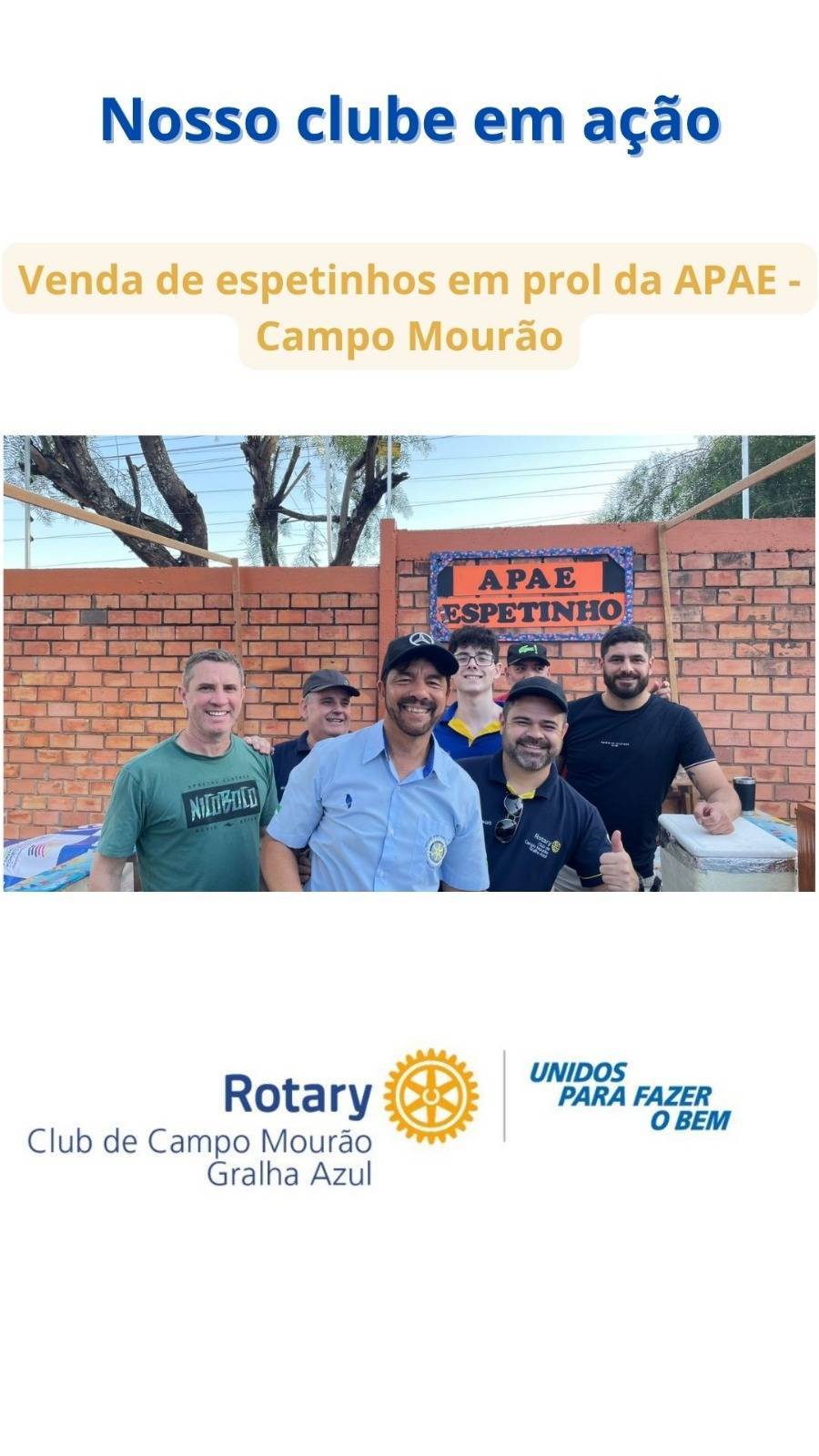 No dia 28/06/2025 o Rotary Club de Campo Mourão-Gralha Azul participou da ação "Espetinho da APAE" na festa junina que beneficiou a APAE de Campo Mourão/PR!
