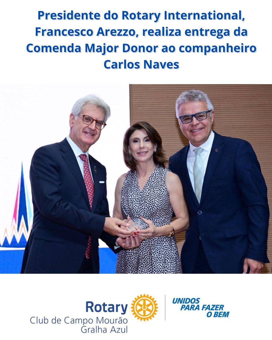 [16:29, 08/09/2025] Marllon Oliveira Advogado Rotary: O Presidente do Rotary International, Francesco Arezzo, realizou a entrega da Comenda Major Donor ao companheiro Carlos Naves, Governador do Distrito 4630 no ano rotário 2018-19.