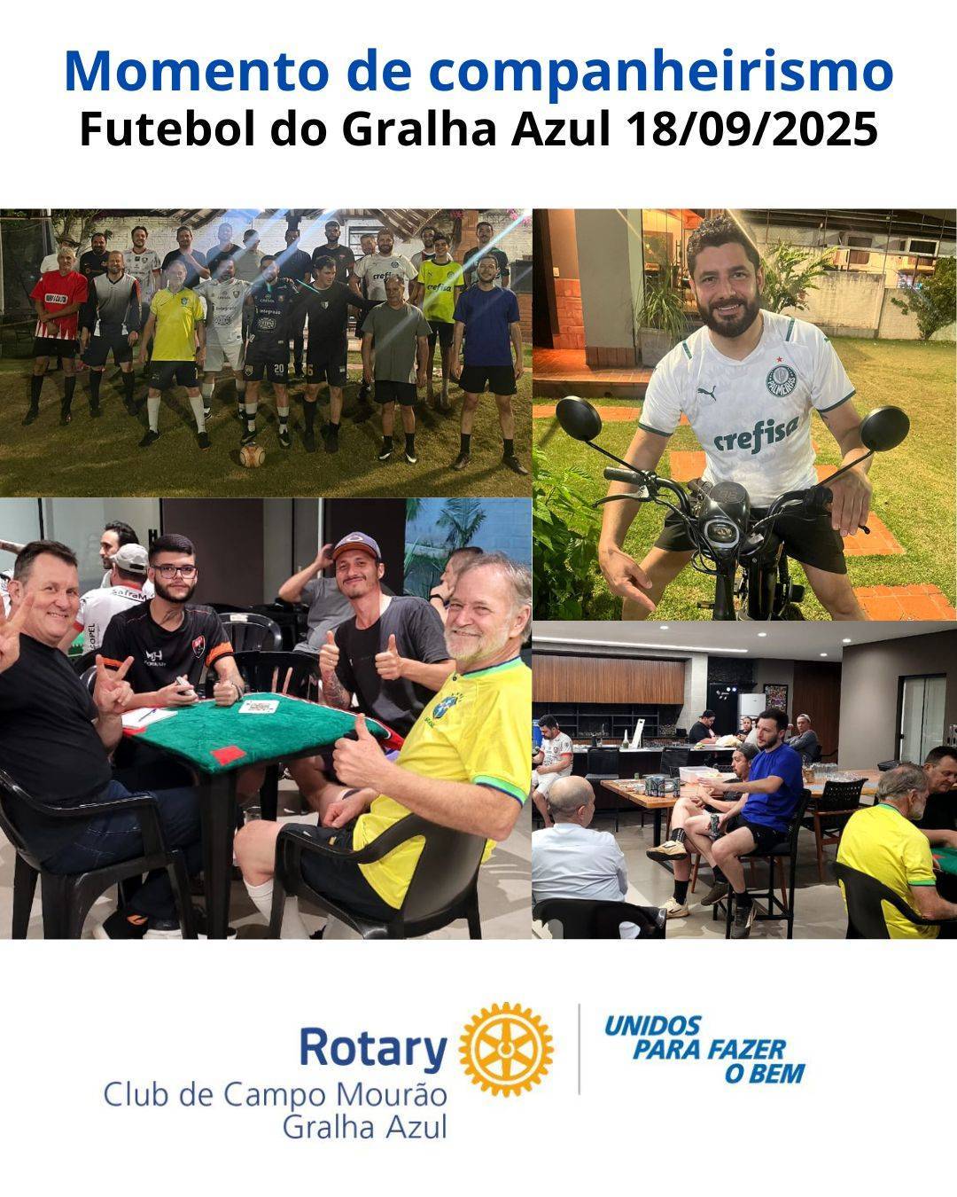 No dia 18/09/2025 fizemos a 2ª edição do Futebol do Gralha Azul nesse ano rotário, o qual foi realizada na cada do companheiro Marcos Corpa, com momento de companheirismo na casa do companheiro Rochefeller!