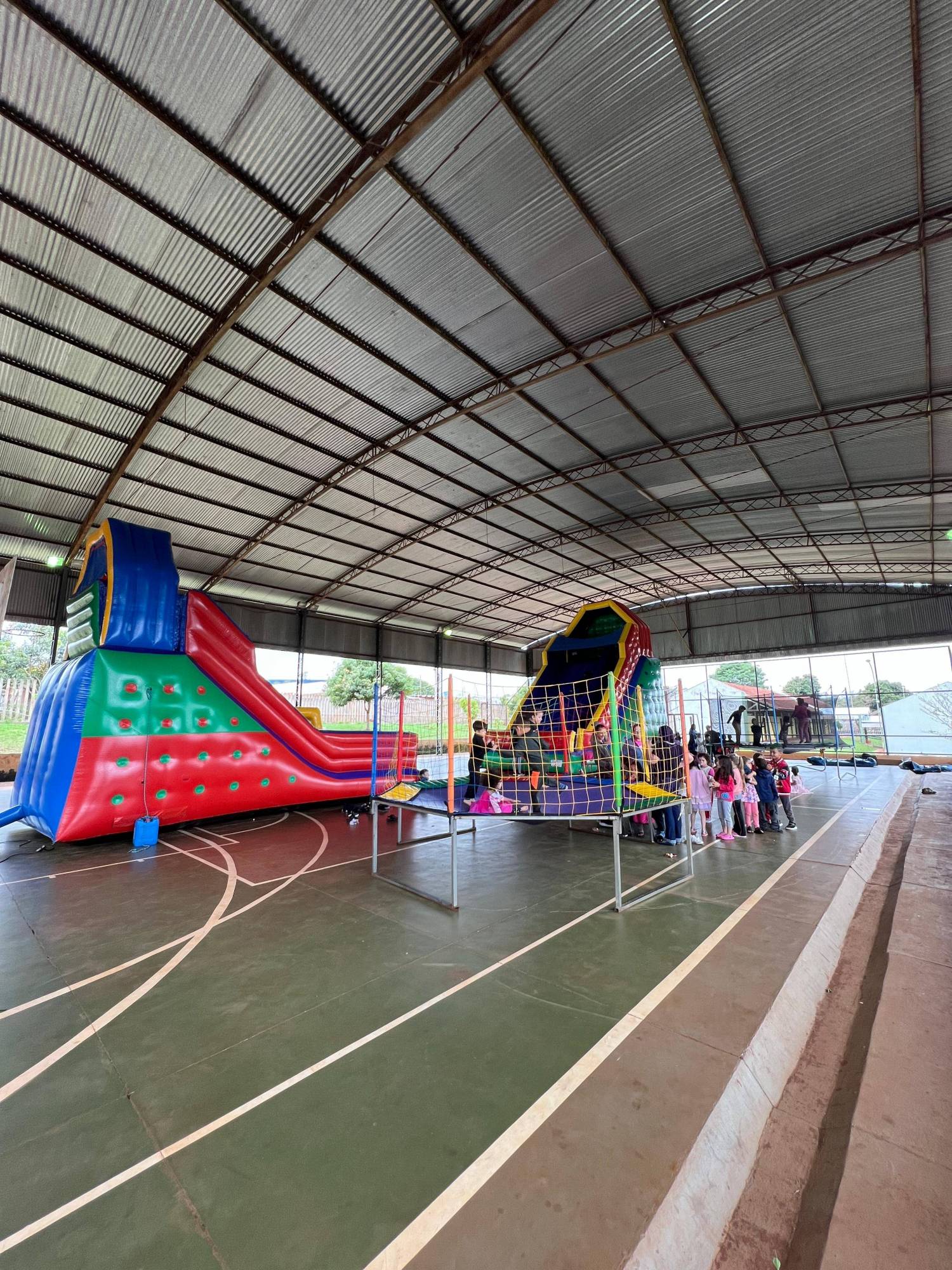 A ação foi realizada na Escola Municipal Nicon Kopko e contou com 340 cachorros quentes e algodão doce servidos, além de brinquedos para a diversão das crianças! Também foram entregues kits com doces para os alunos.