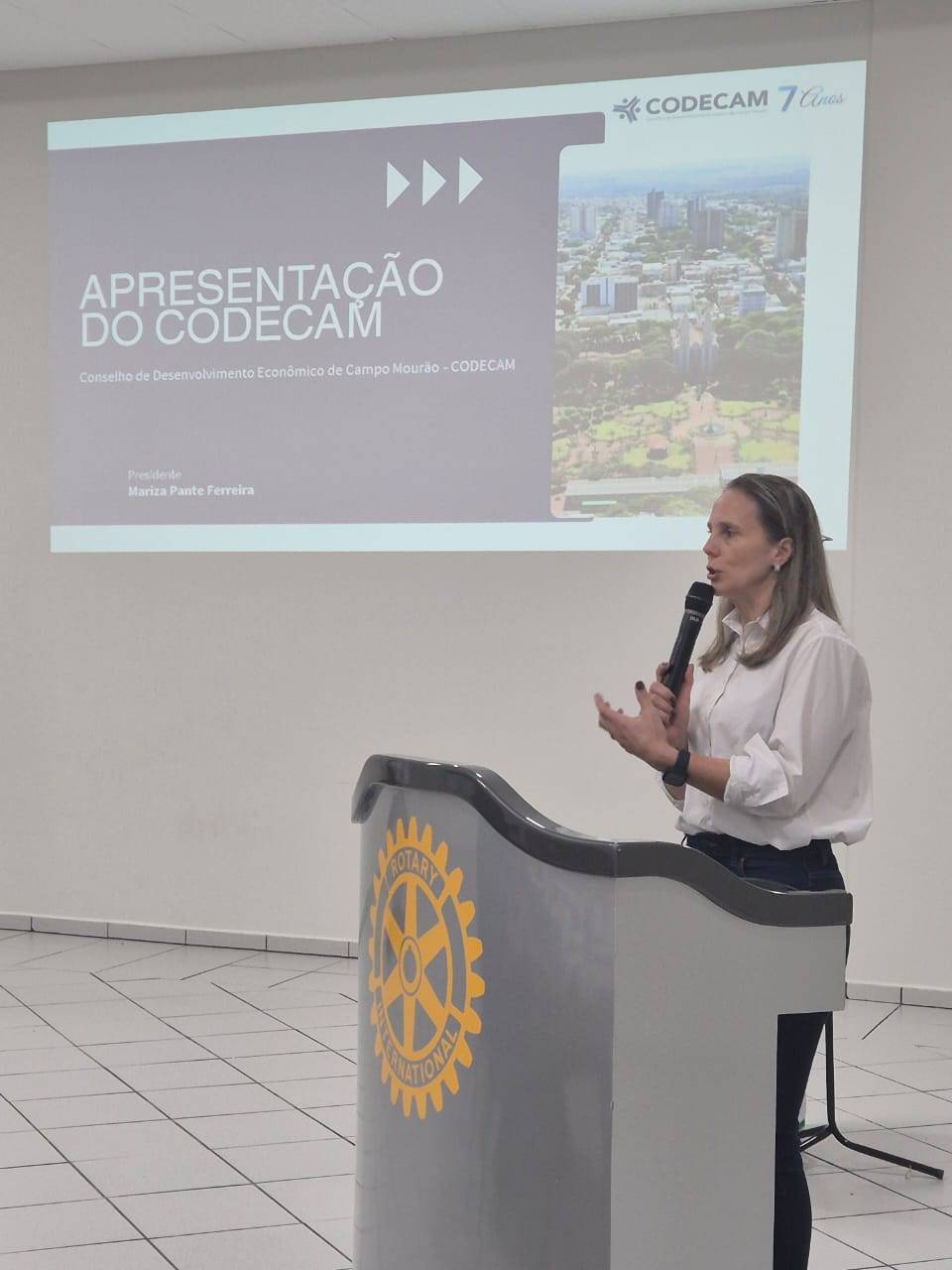 Nossa instrução rotária foi conduzida pela palestrante Mariza Pante Ferreira - Presidente do Conselho de Desenvolvimento Econômico de Campo Mourão.