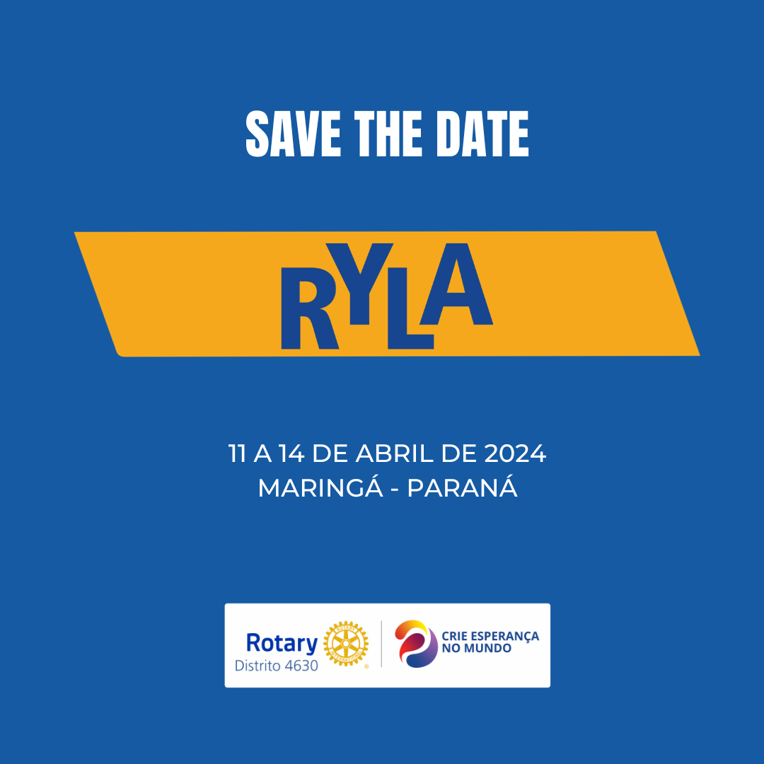A Comissão Organizadora do RYLA (Prêmios Rotários de Liderança Juvenil) informa que o evento será realizado dos dias 11 a 14 de abril, no Recanto Pascal, em Maringá. O programa destina-se a jovens com idade entre 15 e 23 anos. Serão 100 vagas disponíveis.