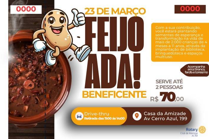 No dia 23 de março, a população de Maringá tem um compromisso com a solidariedade! Ao adquirir uma feijoada pelo valor de R$ 70,00, que serve até duas pessoas e acompanha arroz, farofa e torresmo, os participantes estarão contribuindo diretamente para projetos que beneficiam mais de 2.000 crianças. O evento acontece no formato drive-thru, garantindo praticidade para todos que desejam apoiar a causa.