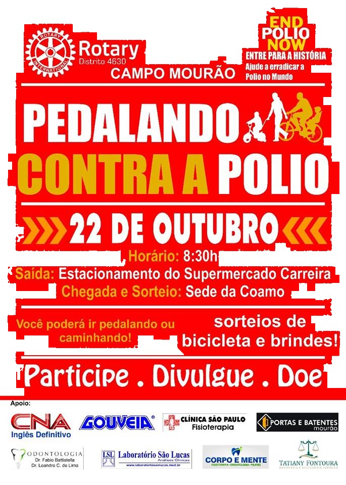 CONVITE PARA PEDALANDO CONTRA A POLIO NA CIDADE DE CAMPO MOURÃO-PR , NO DIA 22.10.2017