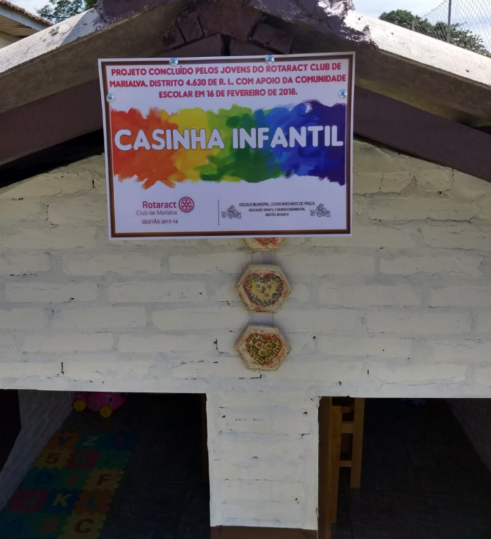 O Rotaract Club de Marialva, no dia 16 de fevereiro, entregou uma Casinha Infantil de alvenaria mobiliada à  Escola Municipal Lucas Machado de Paula (Vila Messias). O objetivo do projeto é proporcionar às crianças da Educação Infantil da instituição uma aprendizagem diferente e mais interativa através do lúdico.