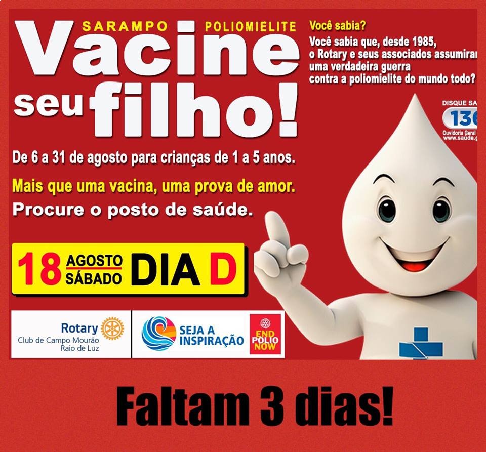 CAMPANHA DE VACINAÇÃO CONTRA POLIO E SARAMPO. FALTAUM 3 DIAS PARA O DIA D #ENDPOLIONOW2018