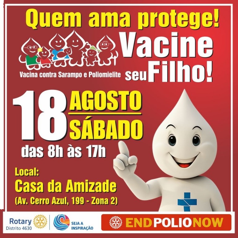 Neste sábado vacinação contra o Sarampo na Casa da Amizade de Maringá, Av. Cerro Azul 199 ou nos postos de saúde.
